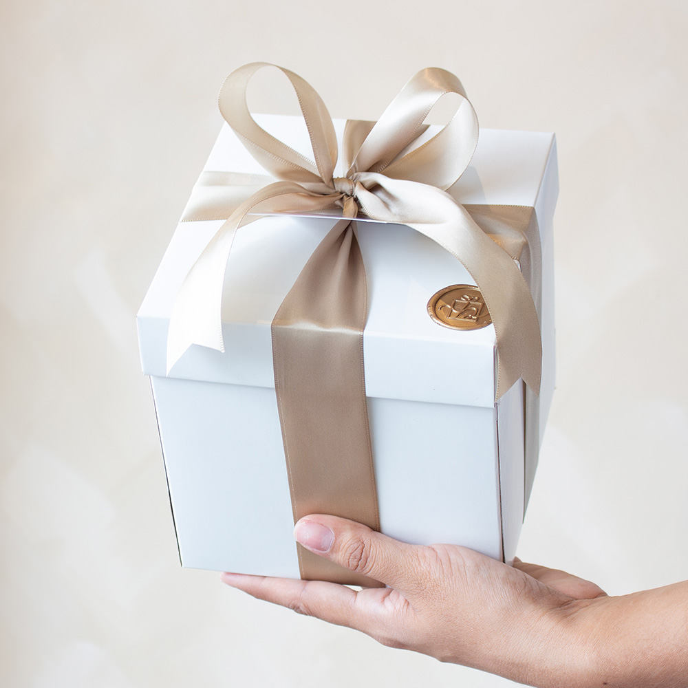 Empacado en caja de material foldcote, tipo cubo medidas 15×15 cm aproximados. Empacado incluye: papel relleno, viruta de papel china, listón decorativo, tarjeta para dedicatoria en blanco. El sello de nuestra marca es opcional.